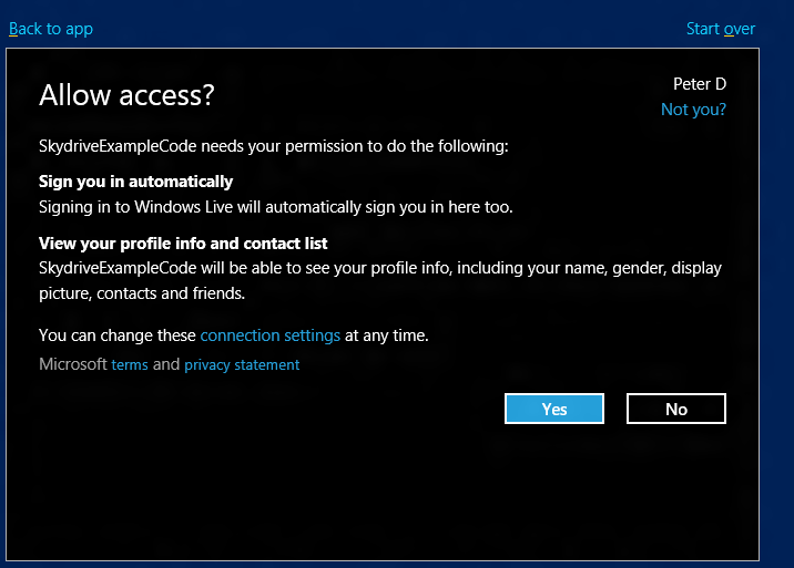 <p> <div style="display:inline;float:none;margin:0;padding:0;" id="scid:9ce6104f-a9aa-4a17-a79f-3a39532ebf7c:cf601697-0c47-4dc1-8af1-3fe674726b3b" class="wlWriterEditableSmartContent"> <div style="border:#000080 1px solid;color:#000;font-family:'Courier New', Courier, Monospace;font-size:10pt;"> <div style="background-color:#000000;overflow:auto;padding:2px 5px;"><live:SignInButton x:Name="btnSignin" Scopes="wl.signin wl.basic wl.skydrive wl.skydrive_update"